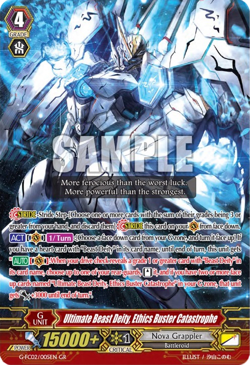 With the new stride and fail-ride, the CBD deck gains incredible locking consistency on first stride and the ability to search out the CBD easily, coupled with the original strength of the CBD deck that works pre-stride. With Chaos Bringer, the CBD can easily counter GB1 decks since both RG columns can be locked by G3 turn with their native lock skill and 1 Photon .