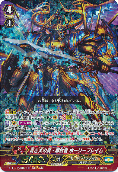 The premise of both Excelics and Amnesty are simple. They give the ability to unlock any number of RGs on both the Messiah player and the opponent's fields, and if 3 or more cards are unlocked, they gain +1 critical. Excelics has an additional effect of retiring all unlocked opponent RG units, thus permanently weakening the opponent's field. Additionally, Messiahs have also recently gained the support of new units that unlock in the battle phase, thus giving them multiple attacks to bolster their offence. As a result, Messiahs are a strong LJ archetype that combine the defensive power of Lock with offence coming from a strong VG column and multiple RG attacks.